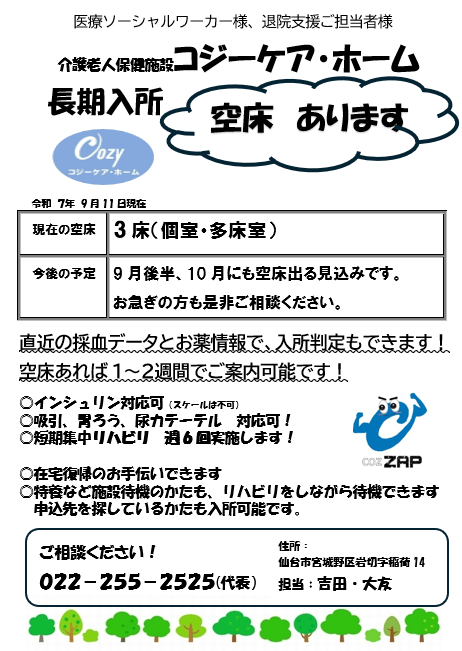 コジーケア・ホーム空床情報